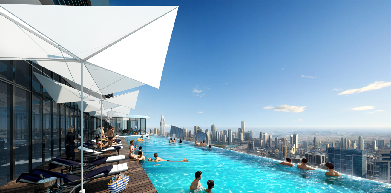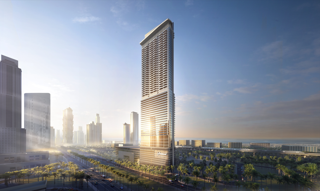 Paramount Tower Hotel & Residences Dubai is a 69-story skyscraper located in Business Bay. It is a mixed-use development featuring a luxury hotel and residential apartments. The hotel offers a range of amenities, including a swimming pool, fitness center, spa, and restaurants. The residences offer stunning views of the Dubai skyline and the Dubai Water Canal. The design is inspired by Paramount Pictures, with a focus on Hollywood glamour.